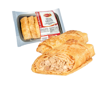 Блины с начинкой из куриных бедрышек 40%, замороженные «Lackmann» 19€/кг